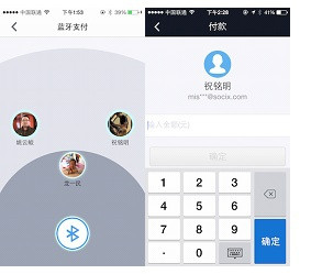 4) 蓝牙同时支持多个人对一个人付款,无语排队等候,这个在人多的情况下优势很明显。
