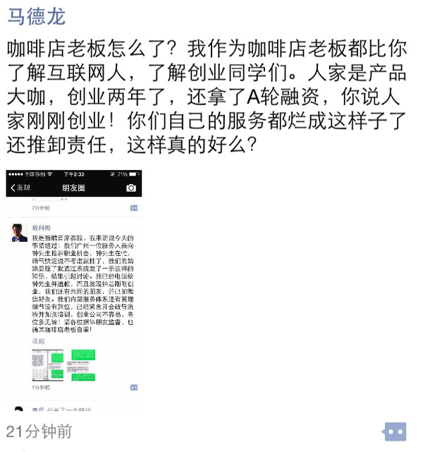 既然是猎聘网CEO戴科彬先生率先主动在朋友圈曝光此事,就应该想到这种引爆舆论的话题势必会被大肆传播,而拉勾网CEO许单单先生在第一时间传播了此事,虽然有点“喜闻乐见”的感觉,但是猎聘网CEO戴科彬先生随后的人身攻击言论简直是给这件事来了个double kill:“也请某咖啡店老板自重!”,这才导致拉勾网CEO许单单先生撰文讽刺。