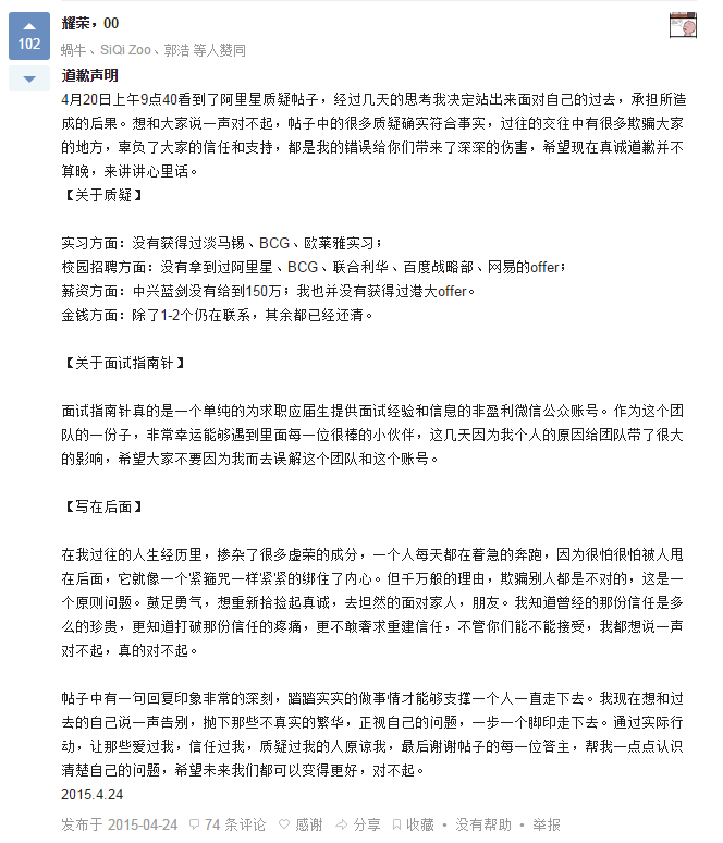 注意!!!阿里星是没有非技术岗位的,东南大学2009级本科生荣耀大神的运营阿里星offer什么鬼?