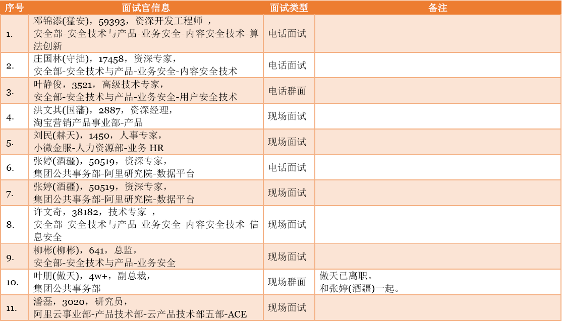 下图是我在阿里巴巴被面试的过程记录(比较正式的前11次):